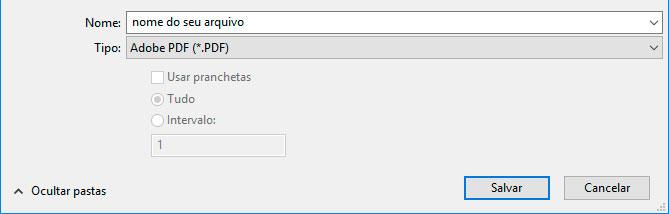 Informe o nome para o seu arquivo, escolha o tipo Adobe PDF e clique em Salvar.