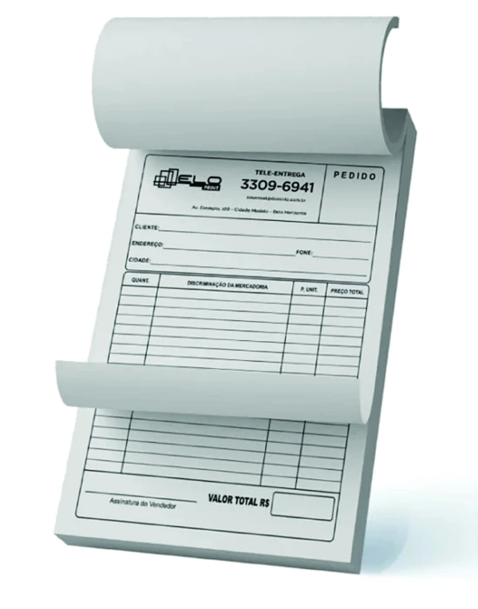 Bloco de pedido - impressão 1 cor - sem numeração - blocos c/ 100 folhas.